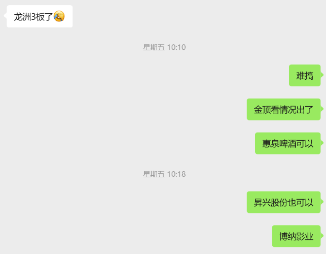 $欣贺股份(SZ003016)$ 六天五个板,炸了三个,前面假炸,今天洗完上攻了,还觉得会炸的,估计是卖飞了眼红吧,这票我上周五就提醒了,周五点的昇兴也三板了