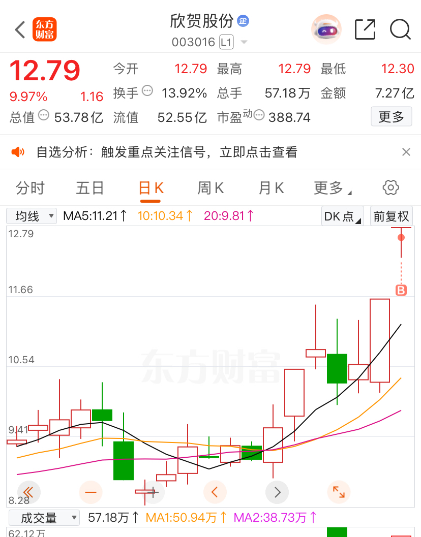 $欣贺股份(SZ003016)$ 打板敢S队,一次开板后,从12.3把股价活生生捞了回来,二次开板直直板上加仓,后面卖盘枯竭稳如泰山,不坚定的己经甩出去了,明天继续顶,还是换手顶。