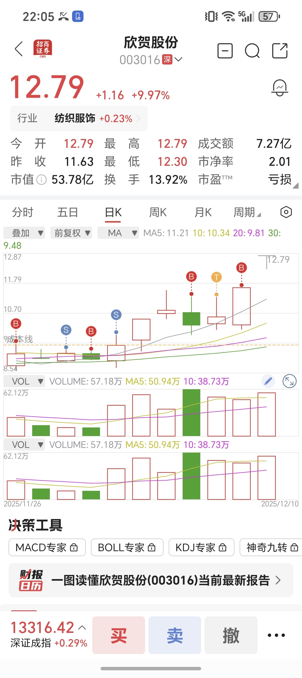 $欣贺股份(SZ003016)$ 今天一股没卖!!!明天一字或者涨停的话就不卖,也有办法做措施!!!