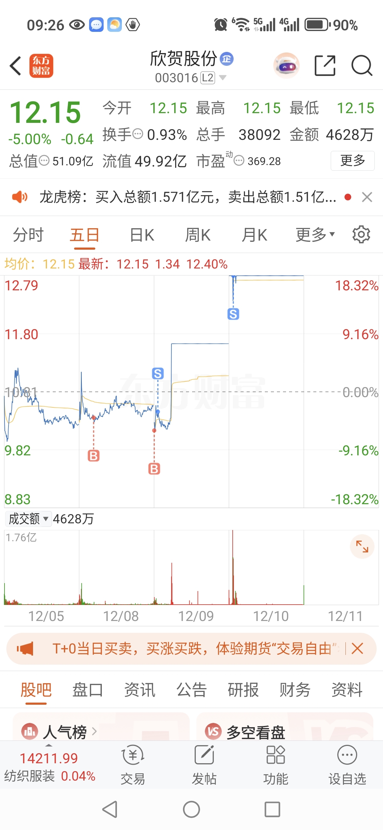 $欣贺股份(SZ003016)$ 还以为昨天卖飞了