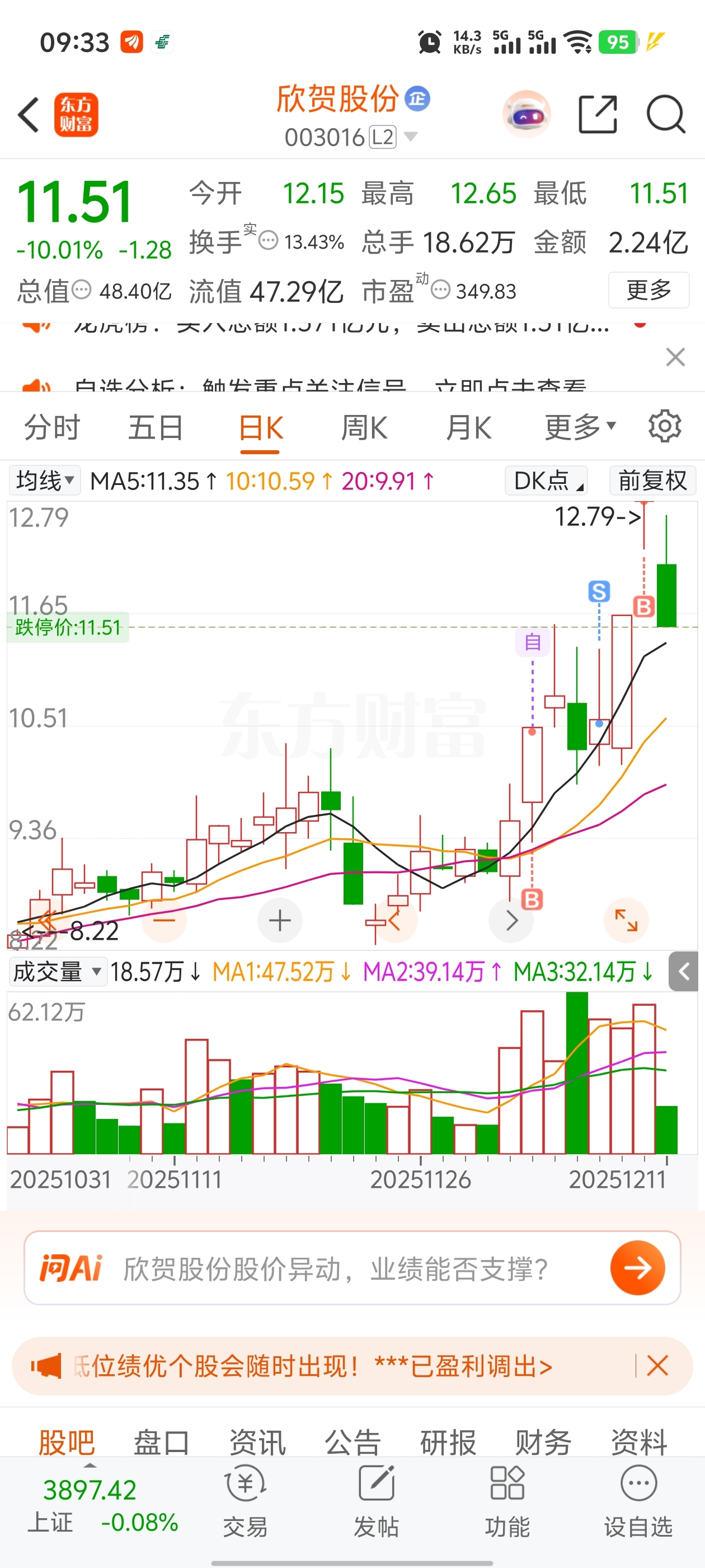 $欣贺股份(SZ003016)$ 主跌全让我吃了是吧
