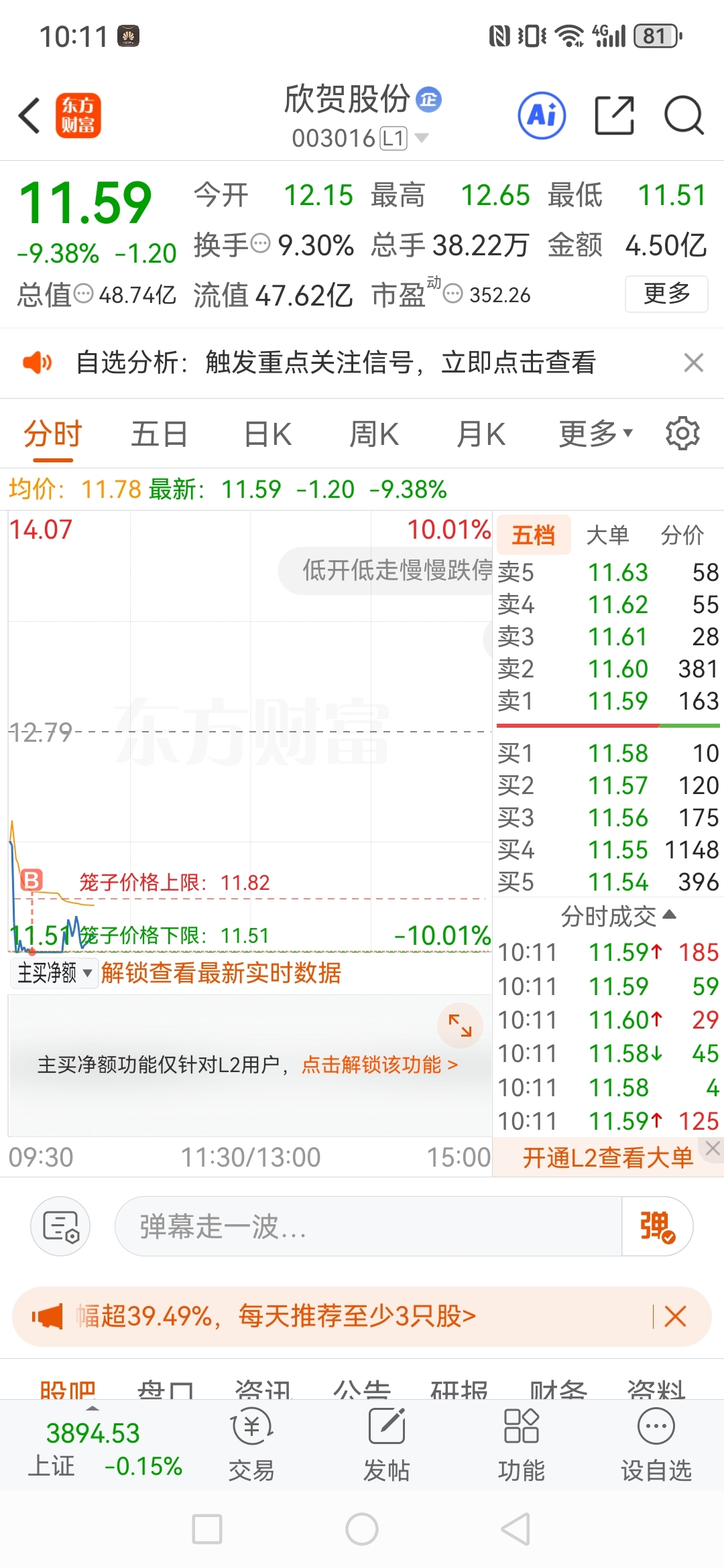 $欣贺股份(SZ003016)$ 等翻红了给我点赞通知我