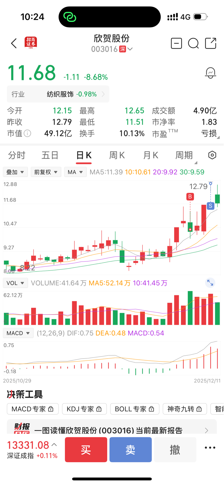 $欣贺股份(SZ003016)$ 昨天已撤退,下个票见