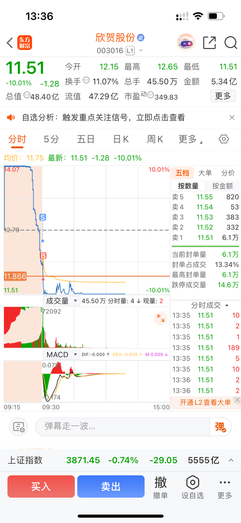 $欣贺股份(SZ003016)$ 都怪我,早上不该砸