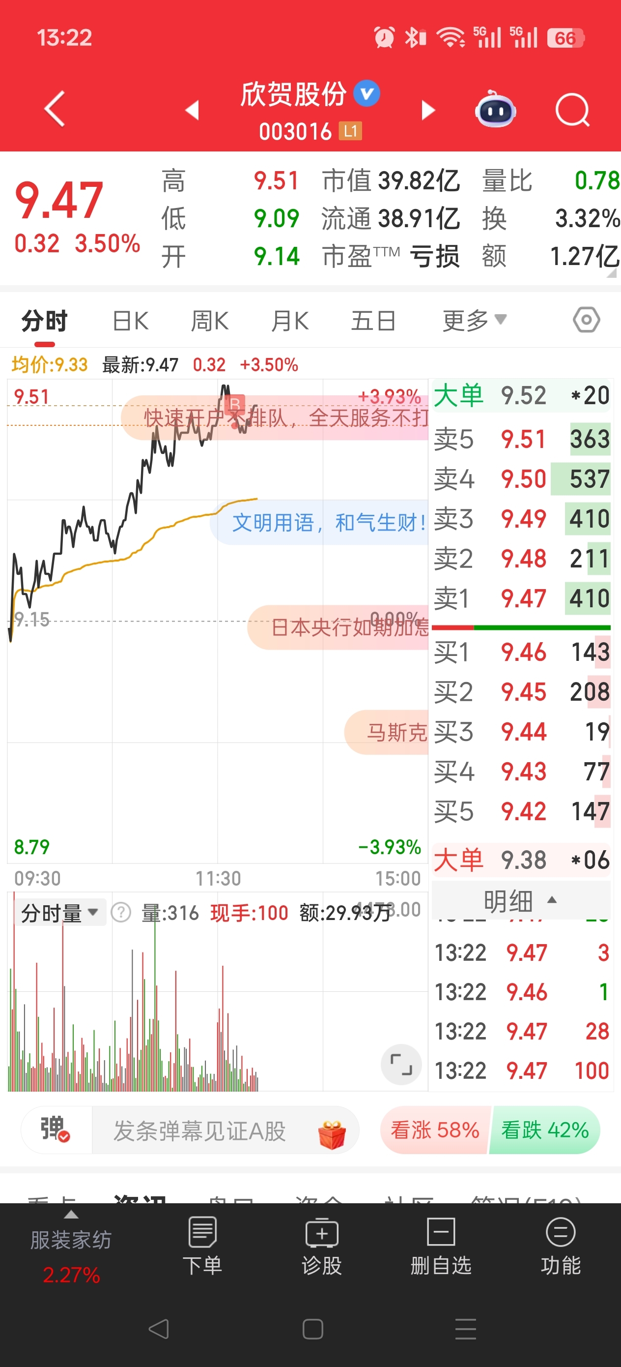 $欣贺股份(SZ003016)$ 买了5000股底仓。