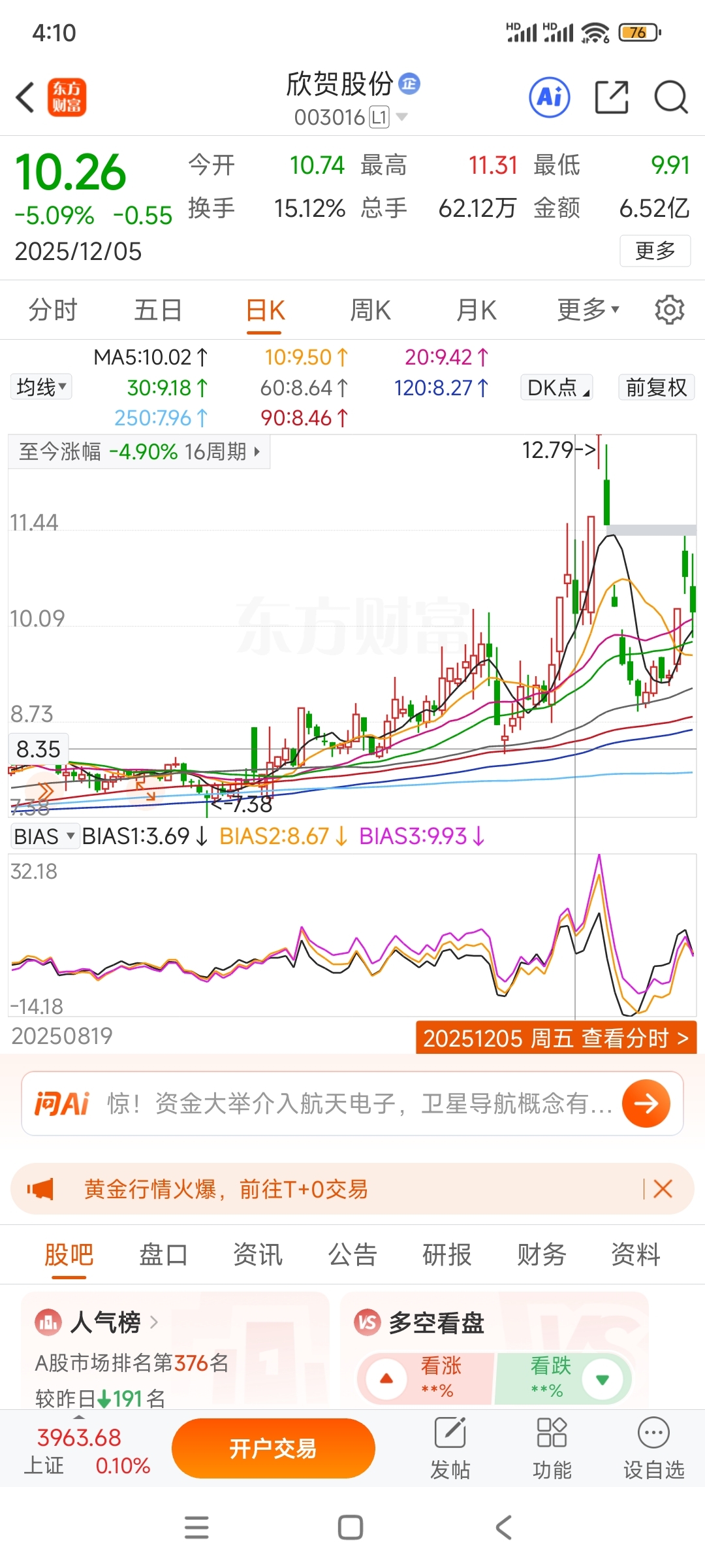 早上说从12.4-12.5就能看出是一个庄,同样涨停炸板后12.5日最低9.91