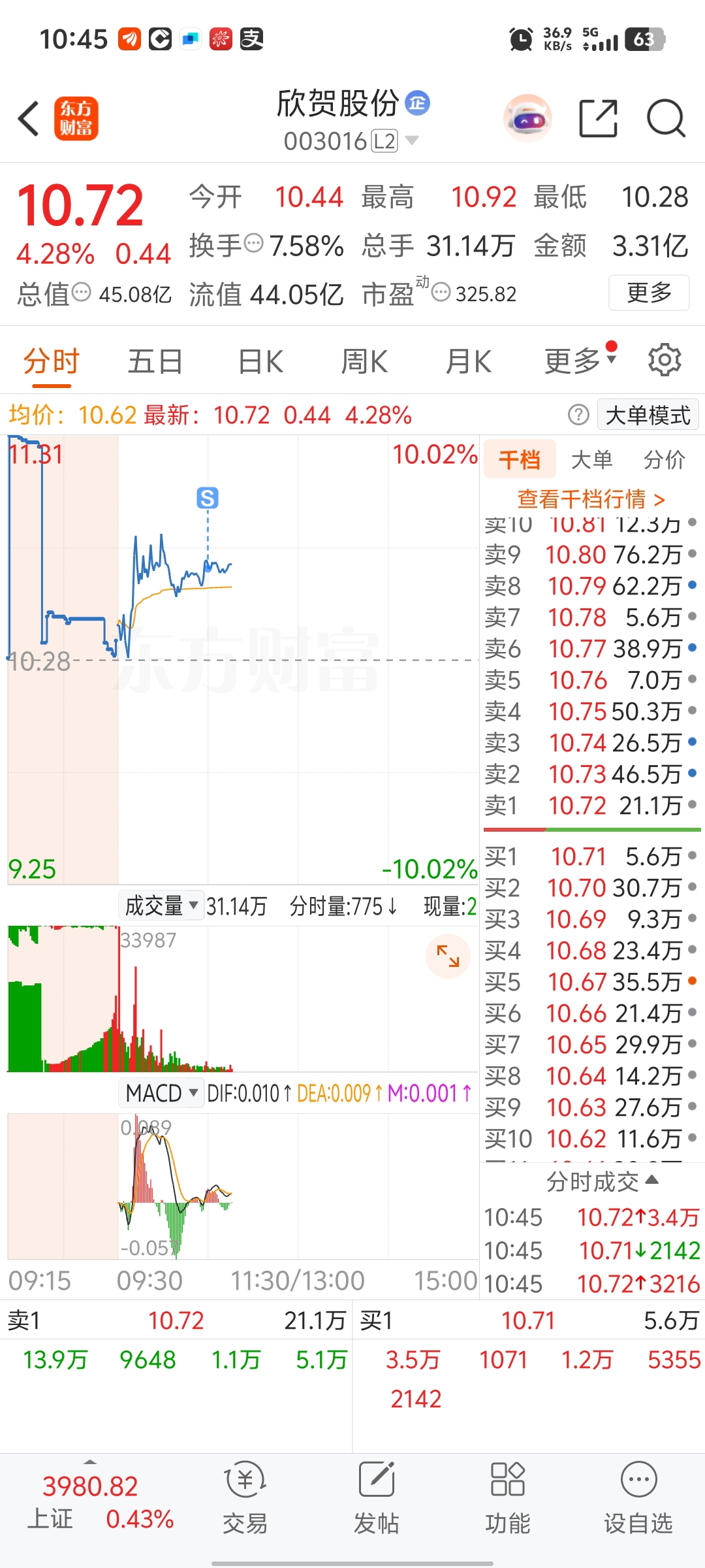 兑现欣贺,隔夜赚了溢价算了,上冲乏力,第一波没走,第二波还上不去就兑现了。接着打