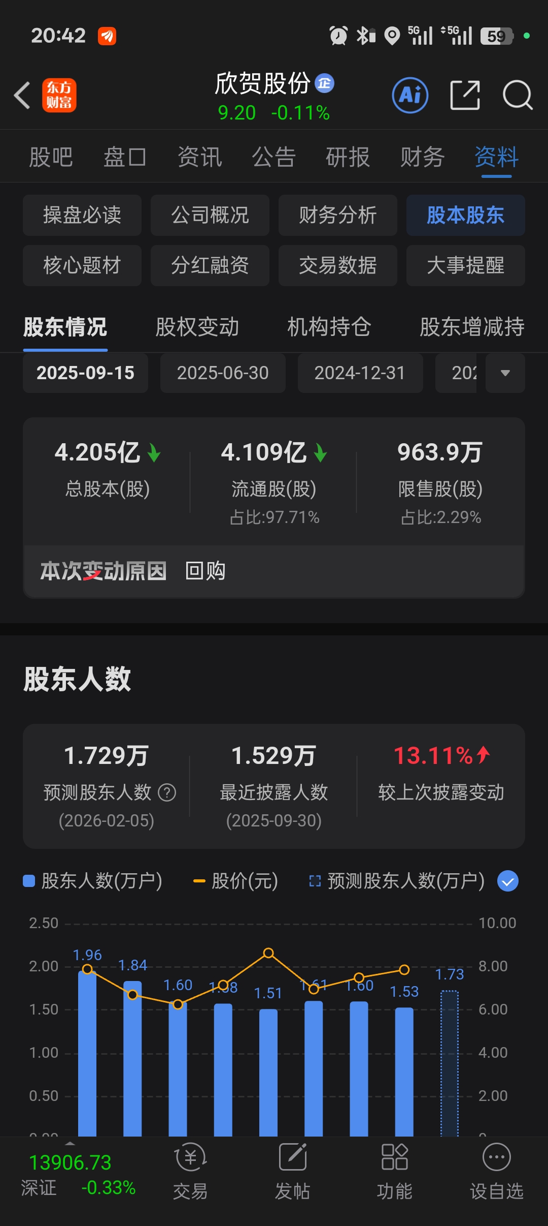 $欣贺股份(SZ003016)$ 股东人数又增多了。周一水下运行