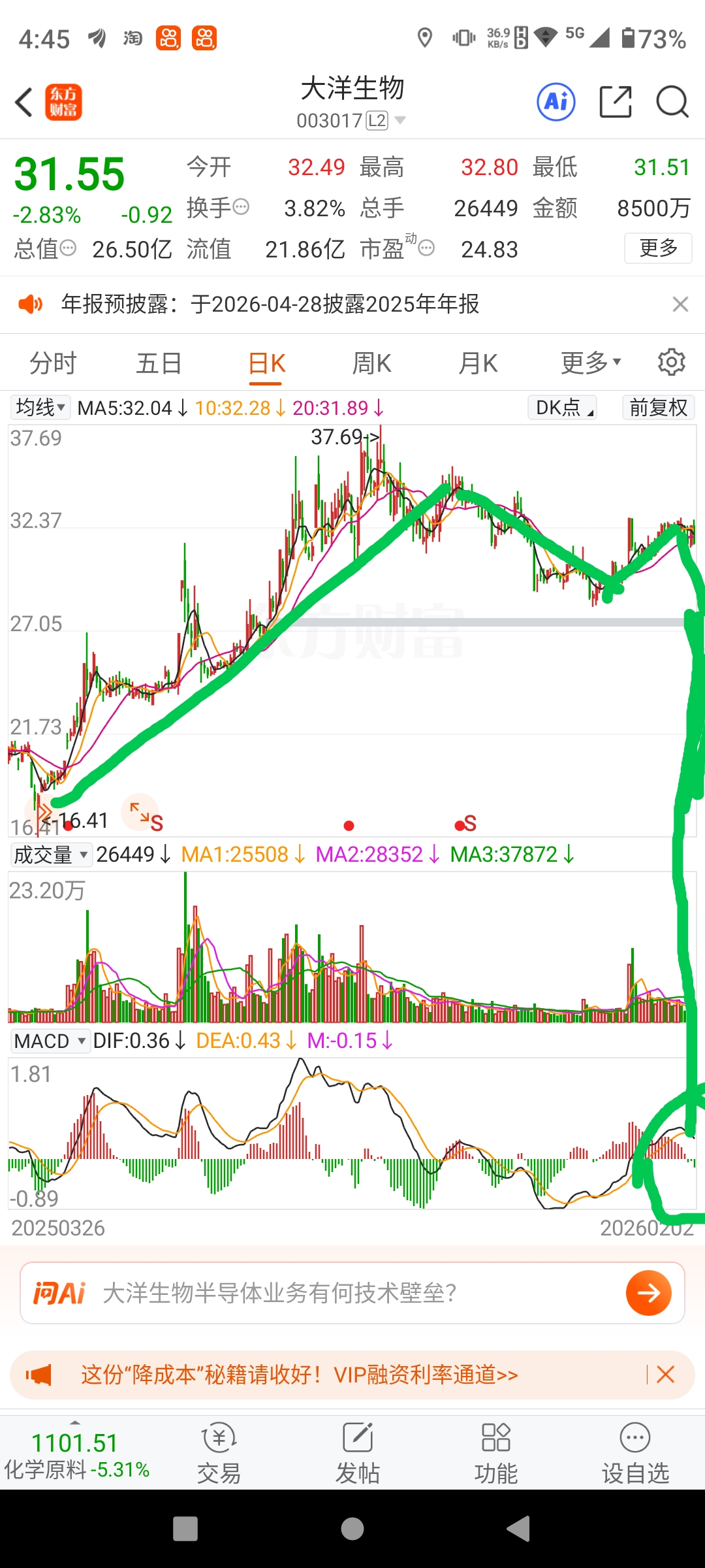 $大洋生物(SZ003017)$ 趋势线已破。 暴跌开始。