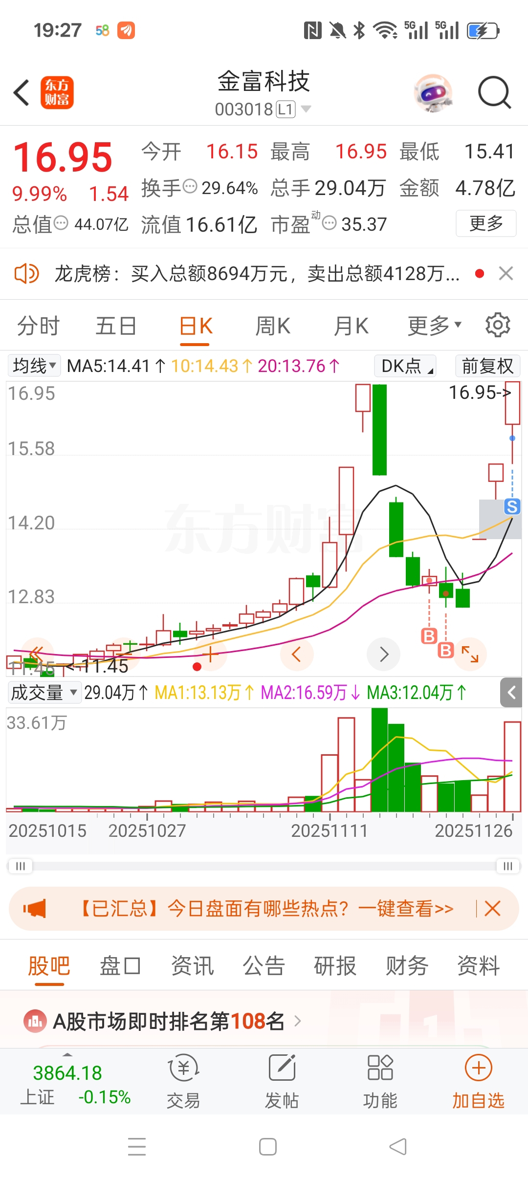 $金富科技(SZ003018)$ 卖飞了,悲剧