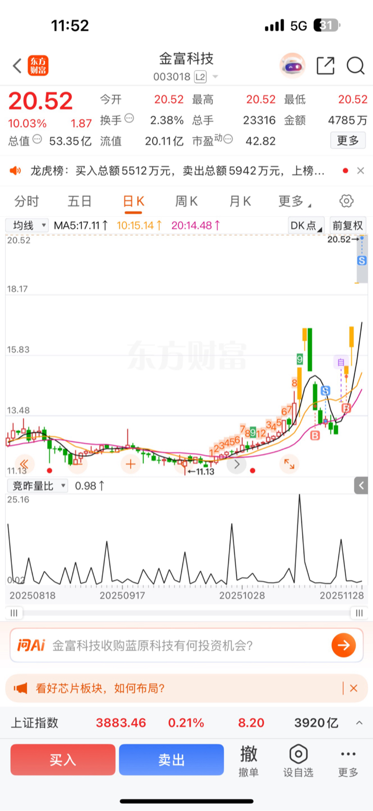 $金富科技(SZ003018)$ 留下的发财,哎可惜买少了