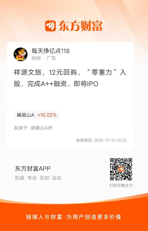 祥源文旅,12元回购,“零重力”入股,完成A++融资,即将IPO