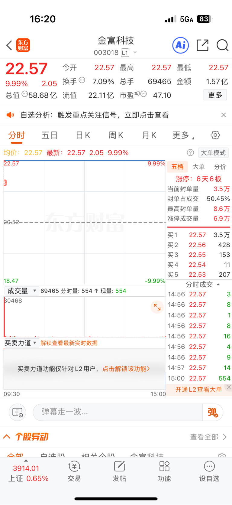 $金富科技(SZ003018)$ 机会都是给有准备的人,天天挂单总会进来的,明天继续一字