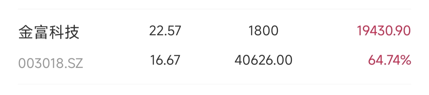 $金富科技(SZ003018)$ 今天卖飞了一半