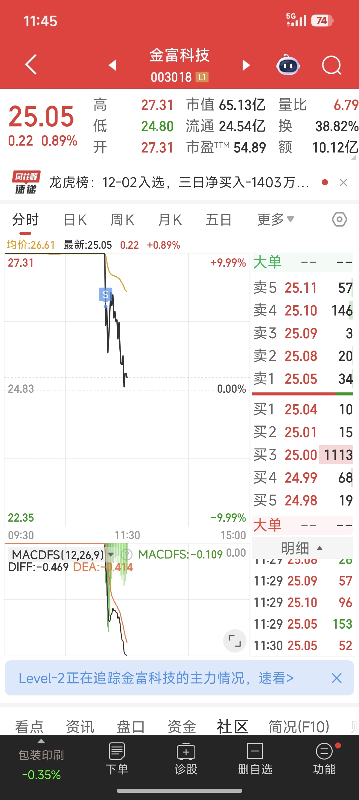$金富科技(SZ003018)$ 涨停没走少吃四个点,吓跑了,留下的兄弟发财