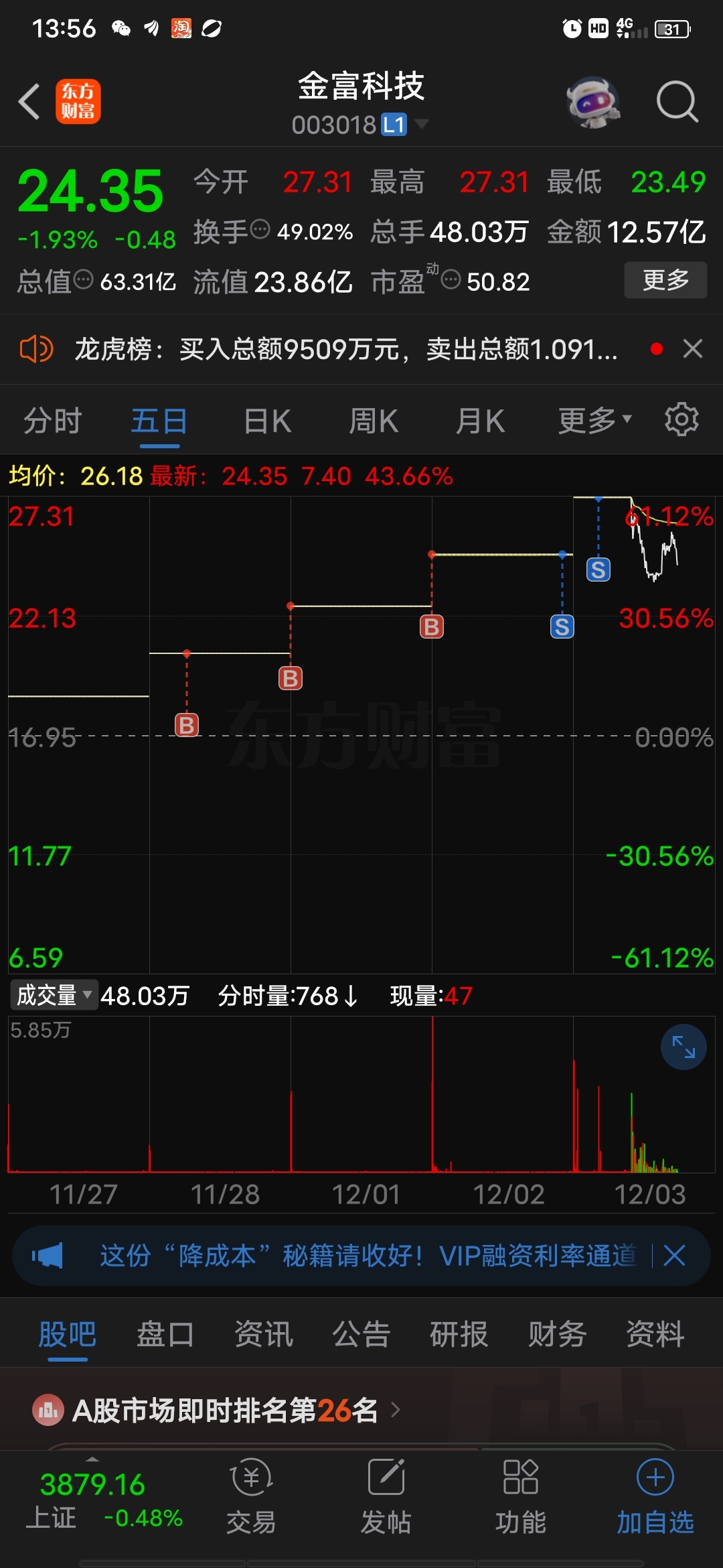 $金富科技(SZ003018)$ 早上涨停全部清仓了