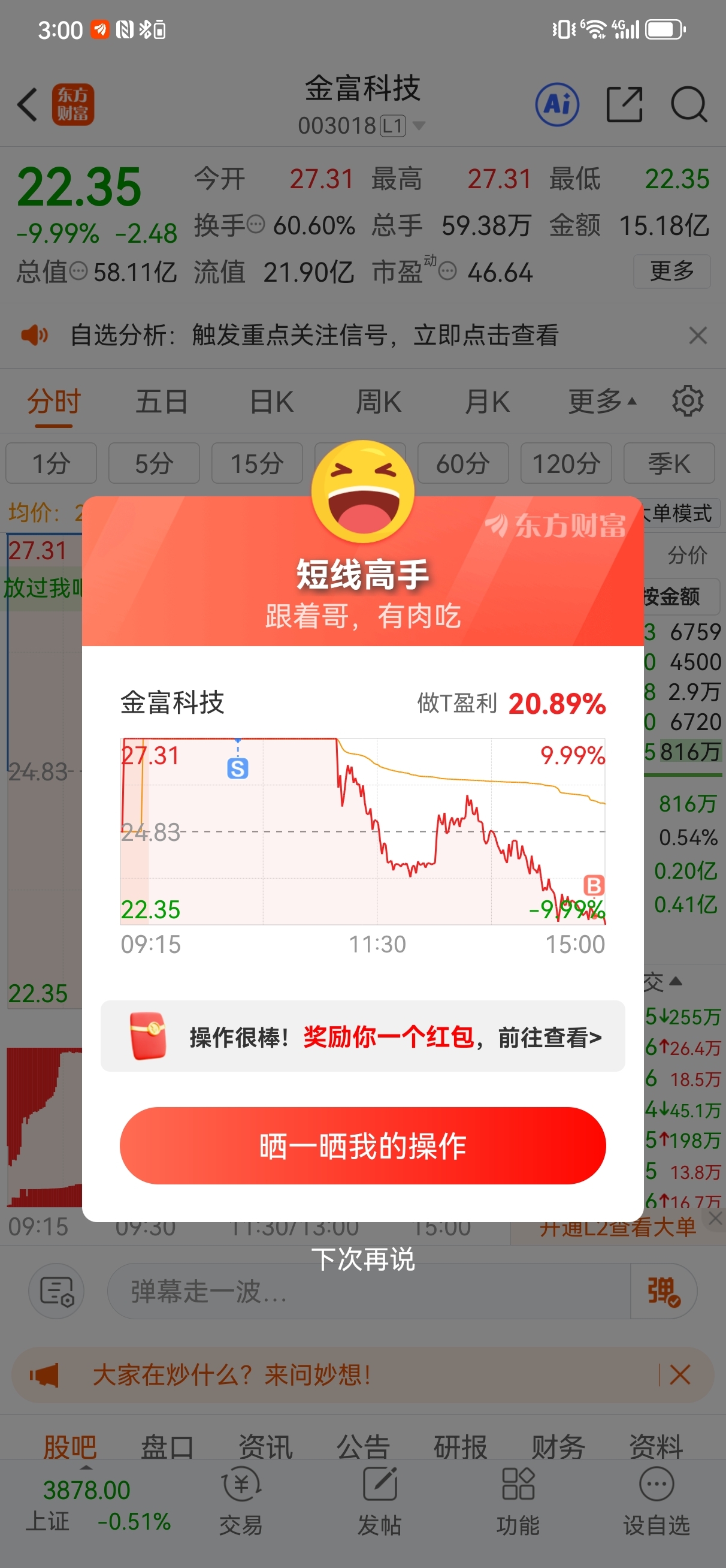 $金富科技(SZ003018)$ 接回来500股明天看看怎么个事