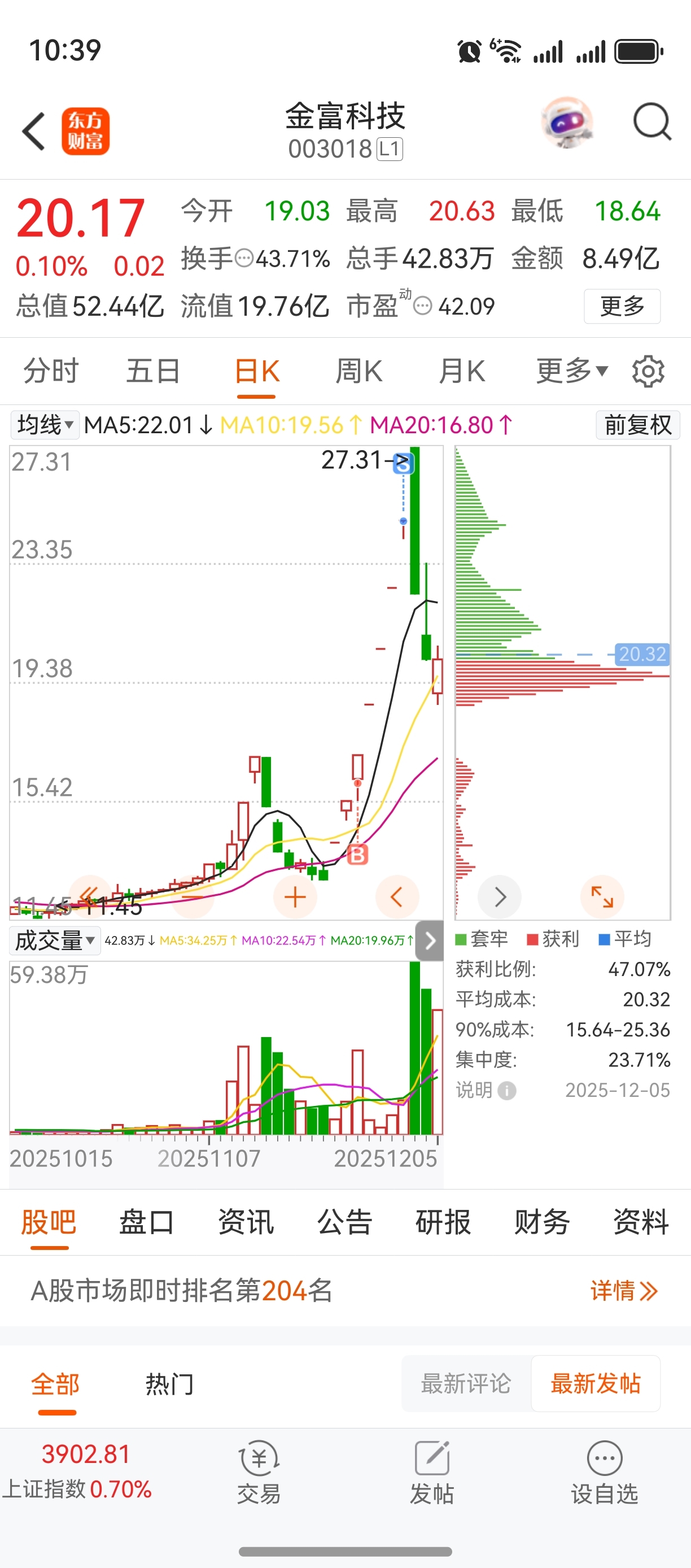 $金富科技(SZ003018)$ 少吃一个涨停板。