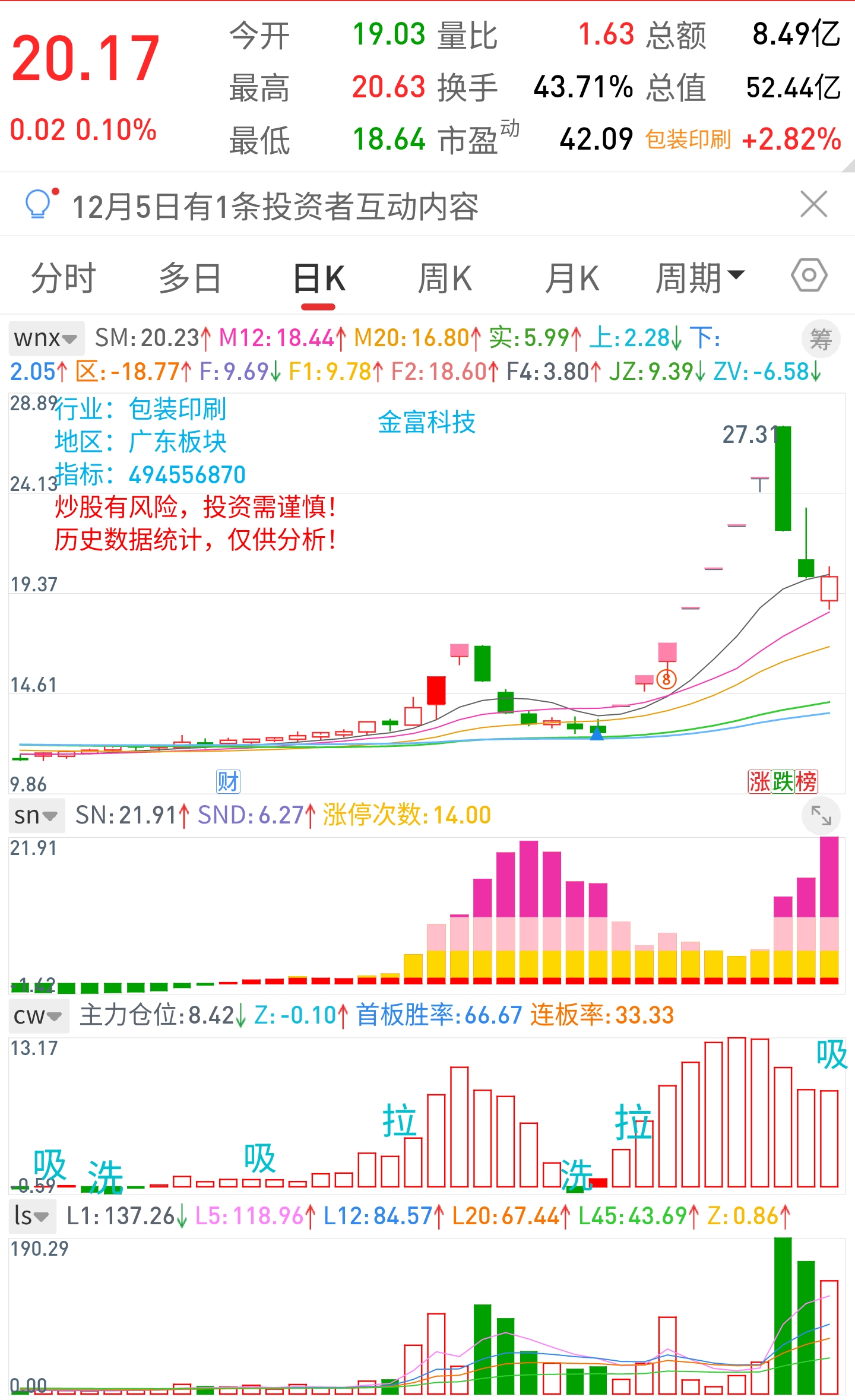 $金富科技(SZ003018)$ #炒股日记# #复盘记录# #股市怎么看# #强势机会# #收盘点评# k线上看是经典的落英形态。落英形态是抄底好时机。连续两个跌停,一根中阳线站稳M12。缩量上涨略有不足。