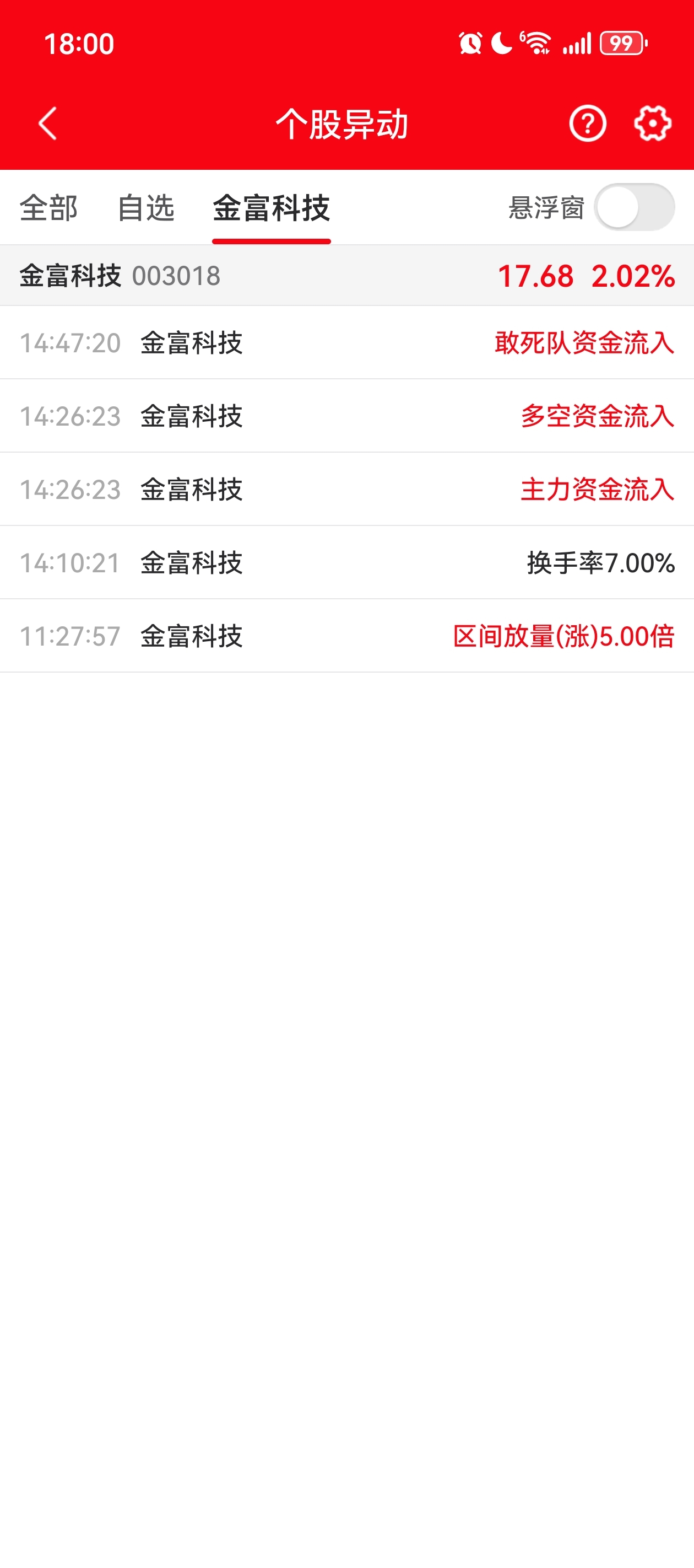 $金富科技(SZ003018)$ 下周不知道咋样!