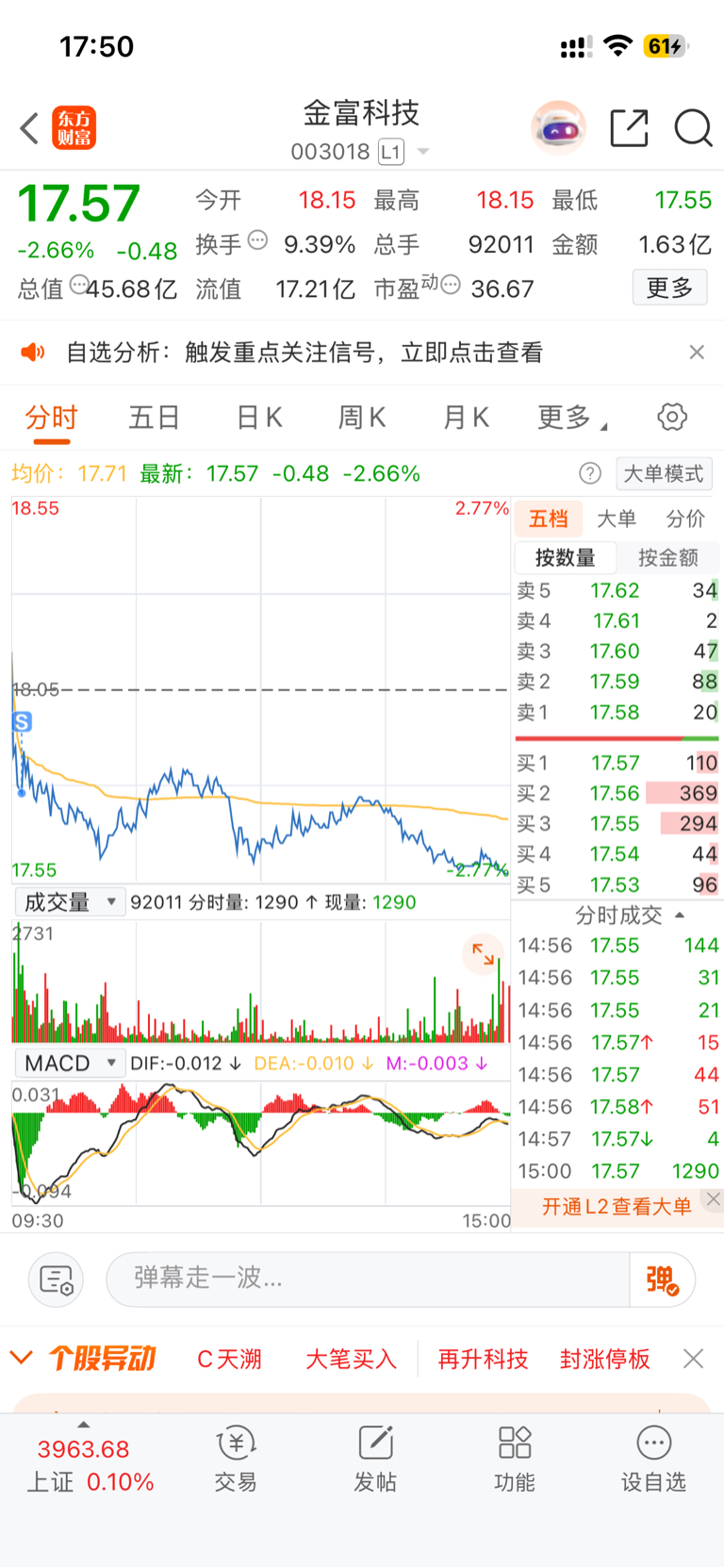 $金富科技(SZ003018)$