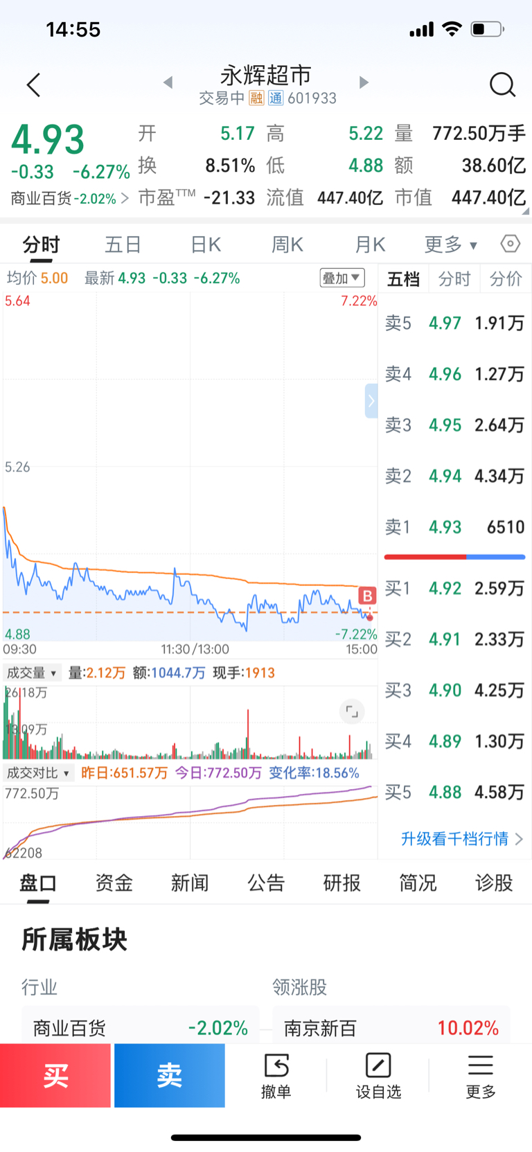 现价成交,半仓卖出!昨天曾补仓,今天卖出随即建仓永辉!这只股票永生不忘!