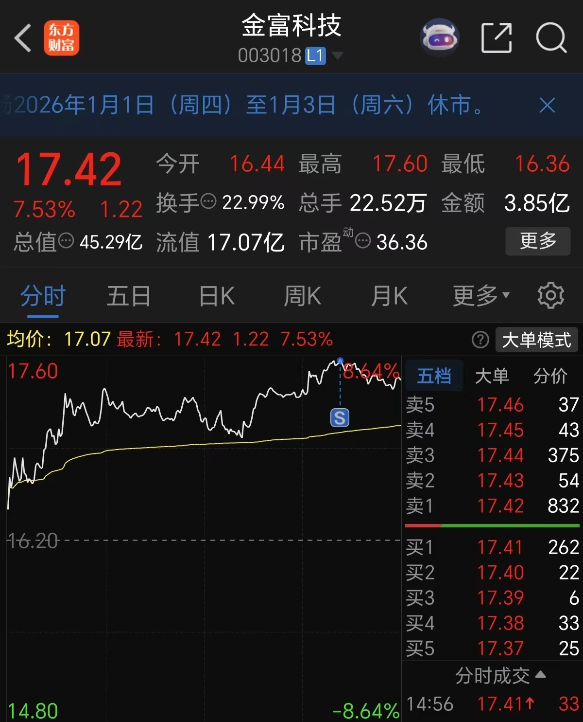 $金富科技(SZ003018)$ 持骨两天,今天跑路了,感谢主力哦