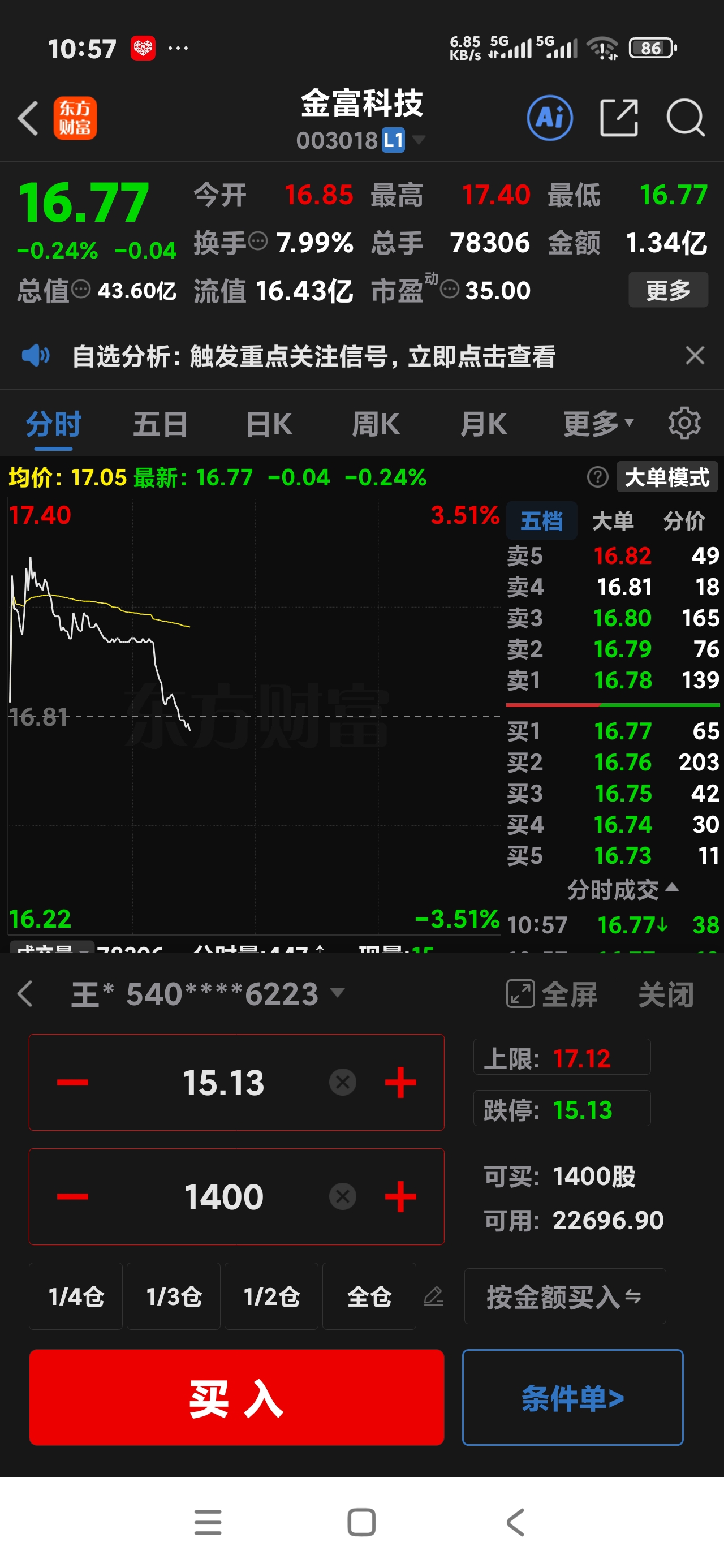 $金富科技(SZ003018)$ 下来吧!我要挨镰刀