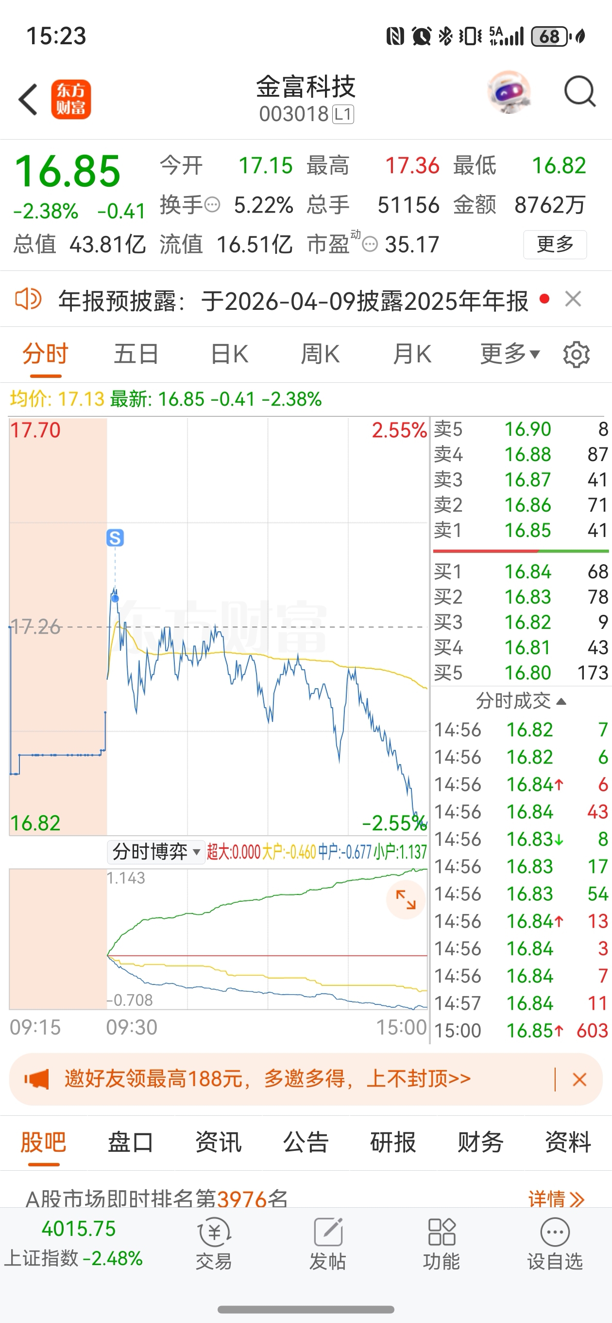 $金富科技(SZ003018)$ 不玩了,大A,早上痛定思痛清了最后一只仓位,发现真的好轻松,不用再被大A支配情绪,一天也不用盯盘,真好