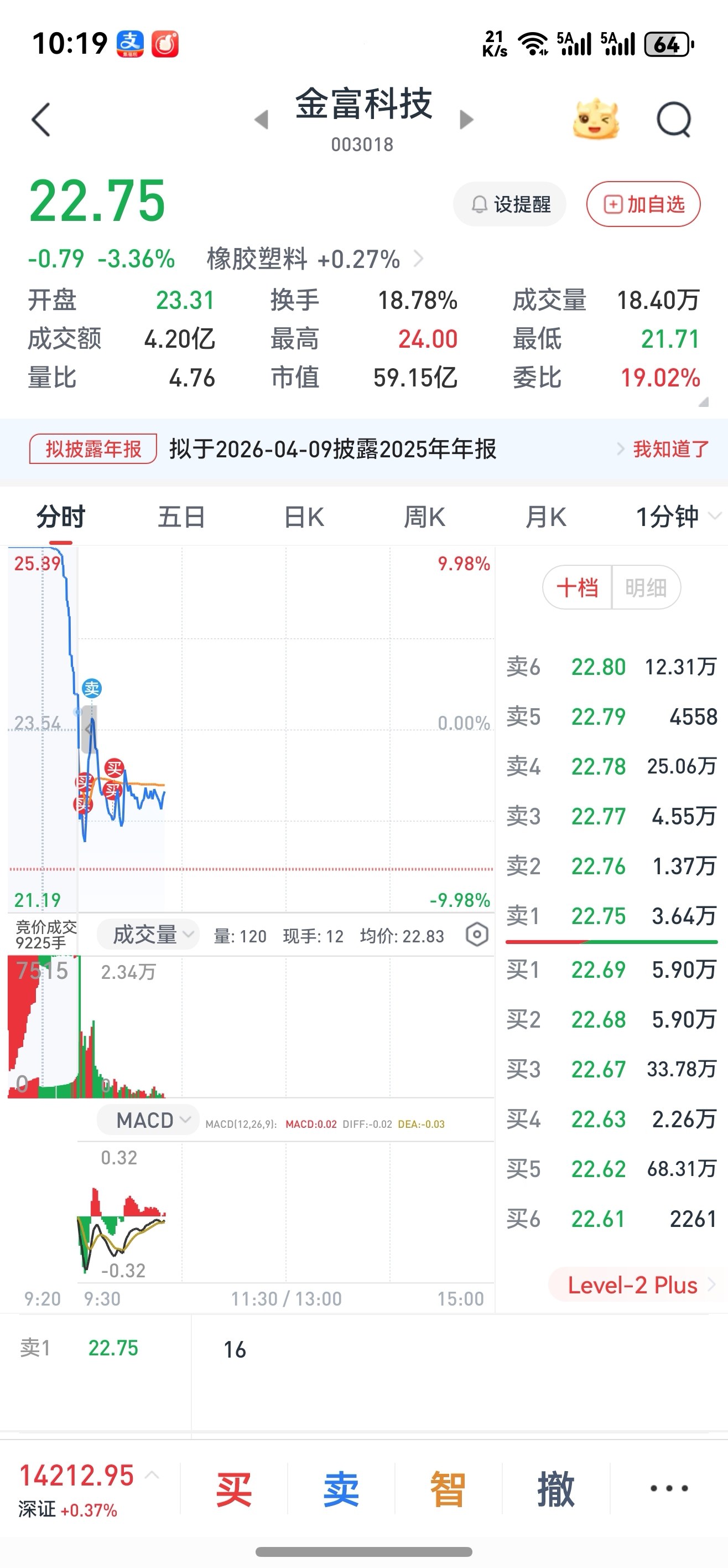 $金富科技(SZ003018)$ 只能做个T字自救一下至少现在还没赔