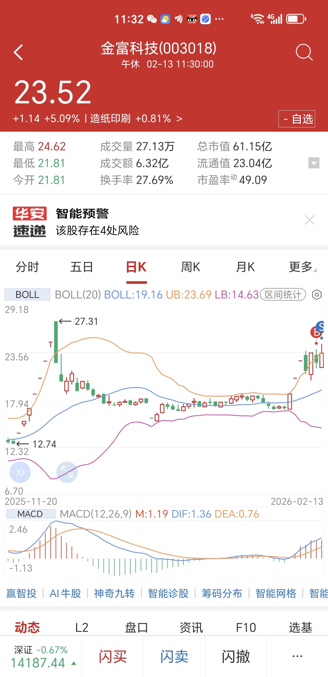 $金富科技(SZ003018)$ 冲高抛了!有机会再买入