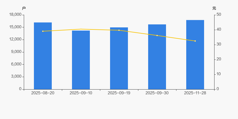 自2025年9月10日以来,公司股东户数连续3期上涨,截至目前增幅为17.99%。2025年9月10日至2025年11月28日区间股价下降19.74%。
