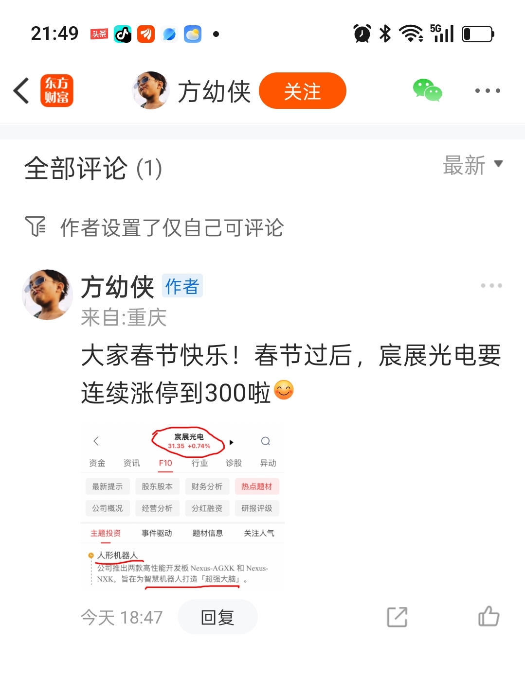 郑重声明:用户在财富号/股吧/博客等社区发表的所有信息(包括但不限于文字、视频、音频、数据及图表)仅代表个人观点,与本网站立场无关,不对您构成任何投资建议,据此操作风险自担。请勿相信代客理财、免费荐股和炒股培训等宣传内容,远离非法证券活动。请勿添加发言用户的手机号码、公众号、微博、微信及QQ等信息,谨防上当受骗!