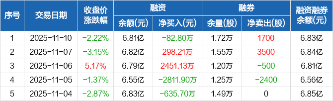 兆威机电:融资净偿还82.8万元,融资余额6.81亿元(11-10)