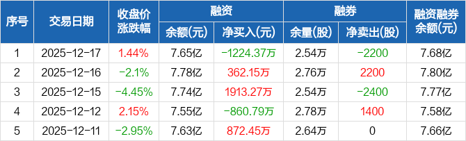 兆威机电:融资净偿还1224.37万元,融资余额7.65亿元(12-17)