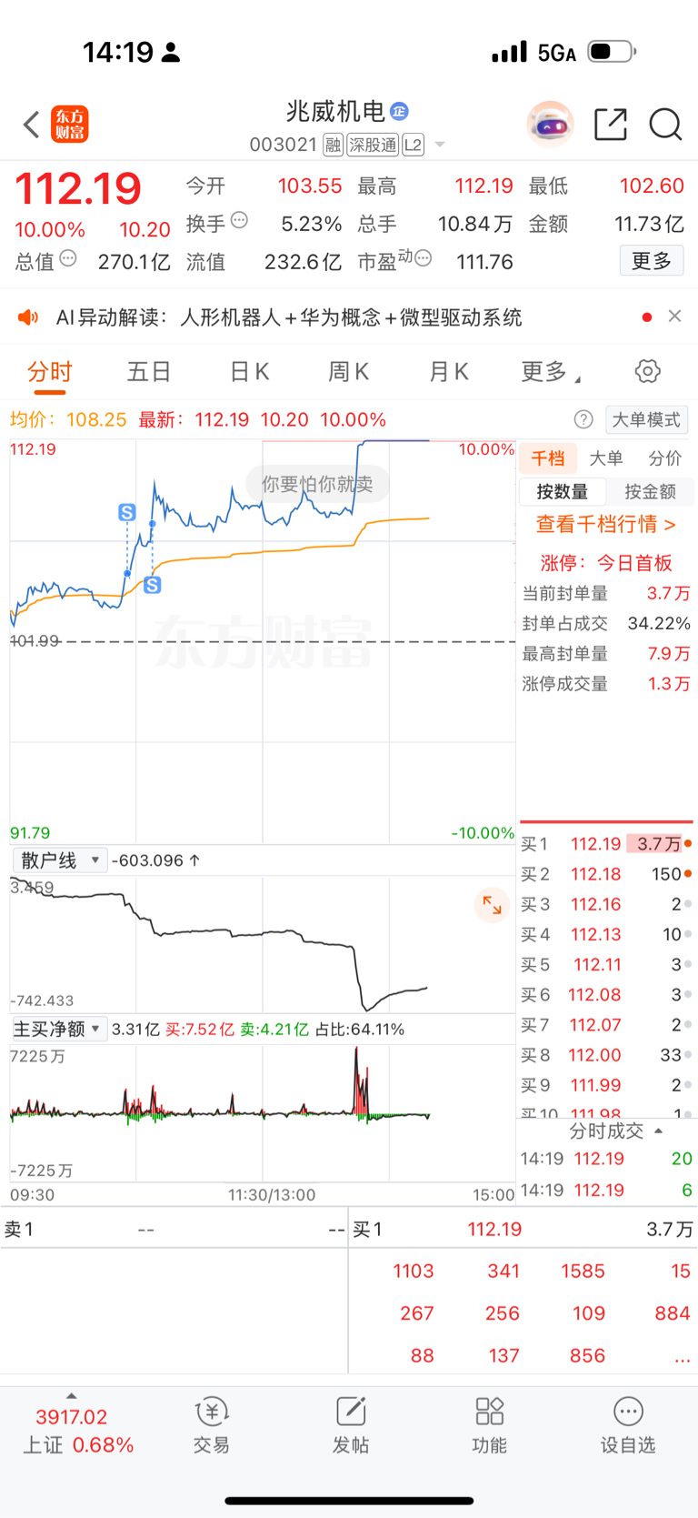 $兆威机电(SZ003021)$ 大腿拍肿了