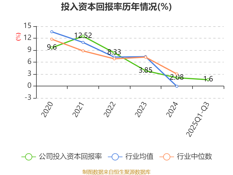 盈利能力方面, 2025年前三季度公司加权平均净资产收益率为3.16%,同比上升0.67个百分点。公司2025年前三季度投入资本回报率为1.6%,较上年同期上升0.14个百分点。