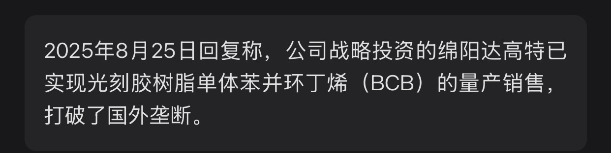 新技能光刻胶领域的票票不多。看看谁是龙头