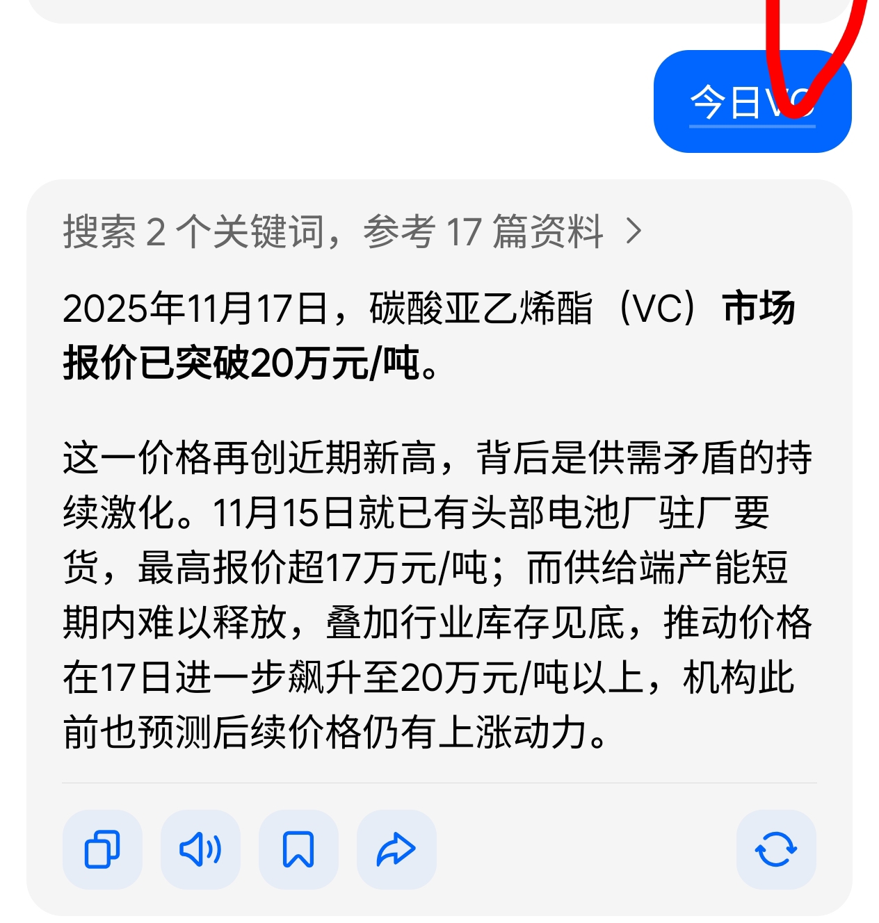 今天VC的价格己升到20万,联泓新科下午涨停