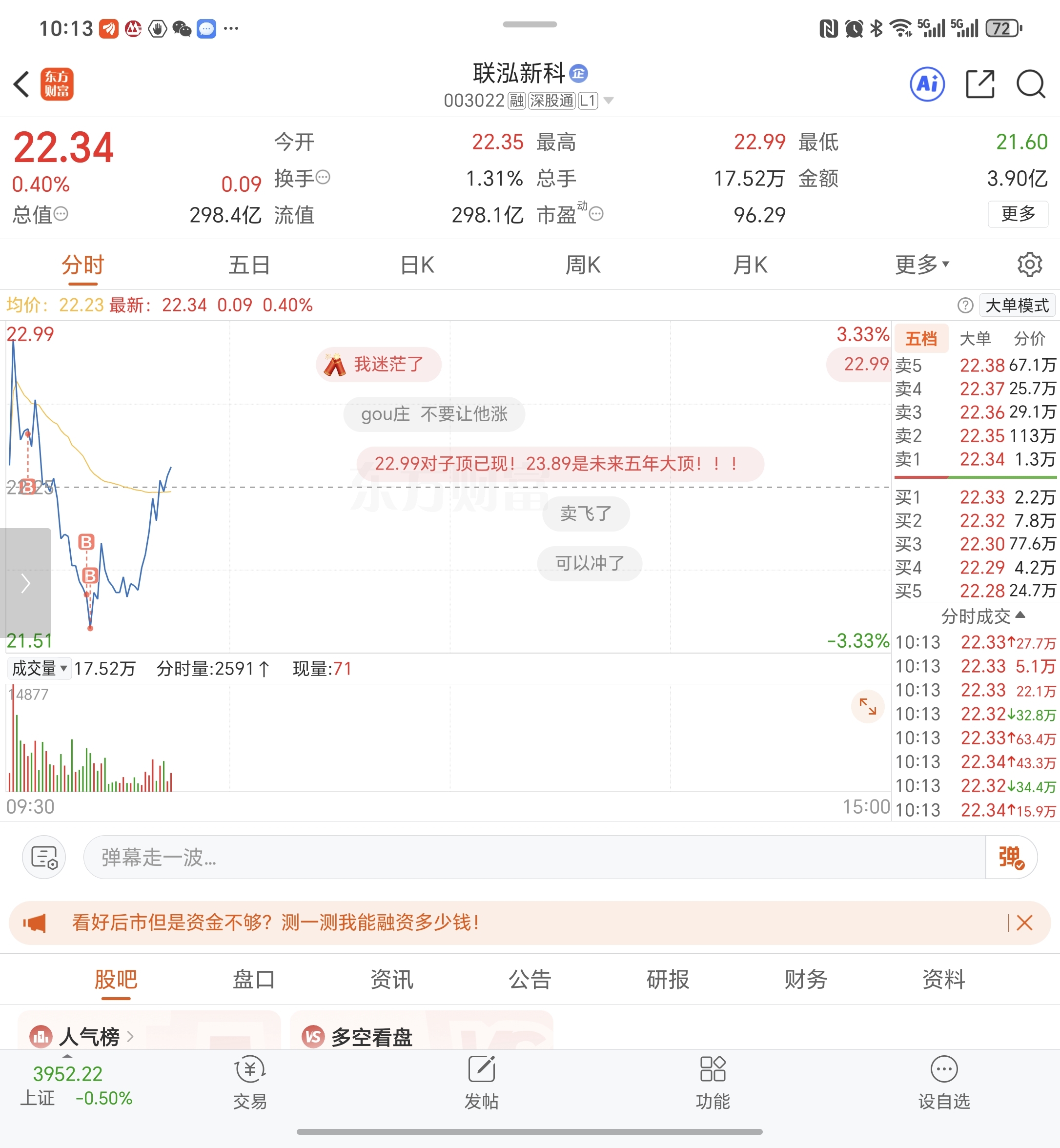 $联泓新科(SZ003022)$ 不出意外今天大阳