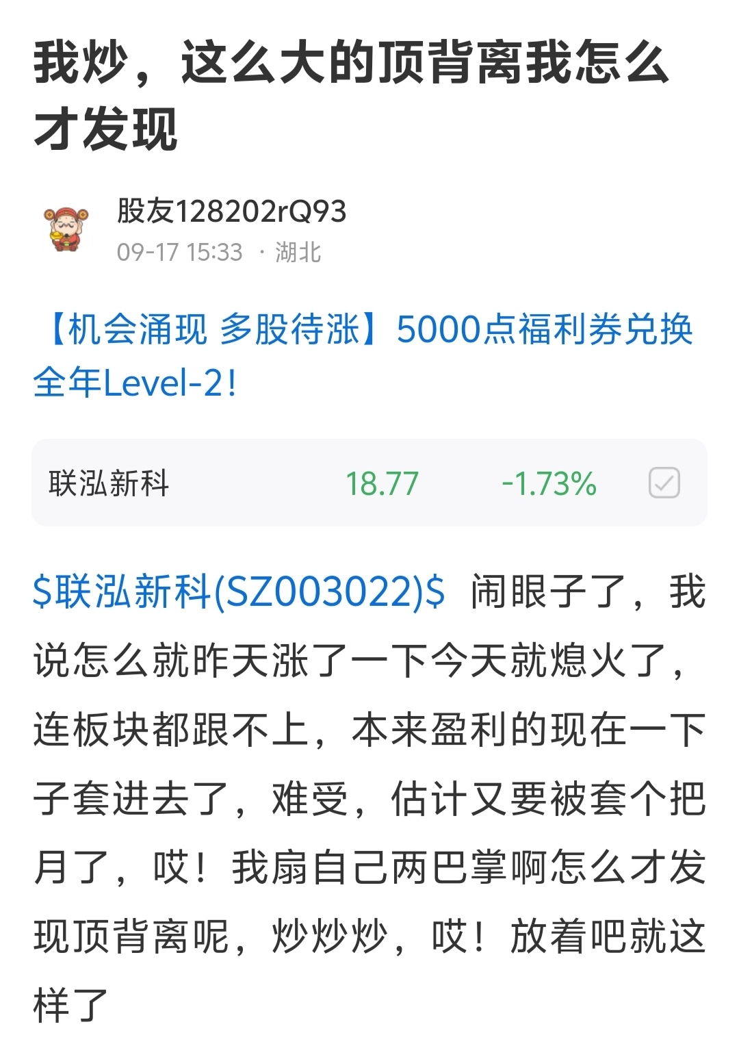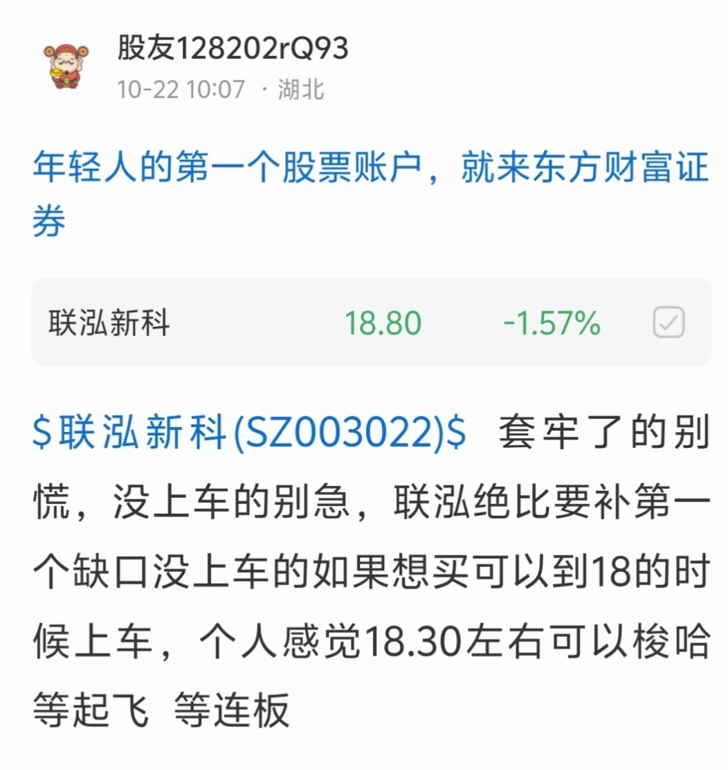 温馨提示: 1.根据《证券法》规定,禁止编造、传播虚假信息或者误导性信息,扰乱证券市场;2.用户在本社区发表的所有资料、言论等仅代表个人观点,与本网站立场无关,不对您构成任何投资建议。用户应基于自己的独立判断,自行决定证券投资并承担相应风险。《东方财富社区管理规定》
