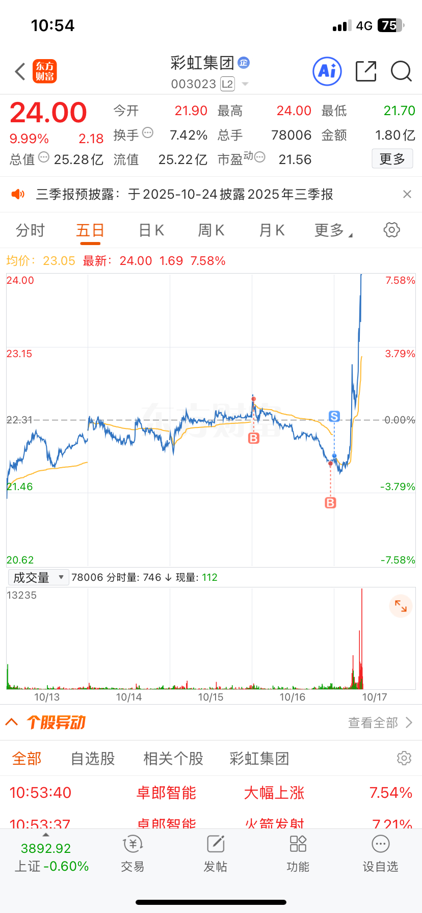 $彩虹集团(SZ003023)$ 日了,突然就起来,什么利好