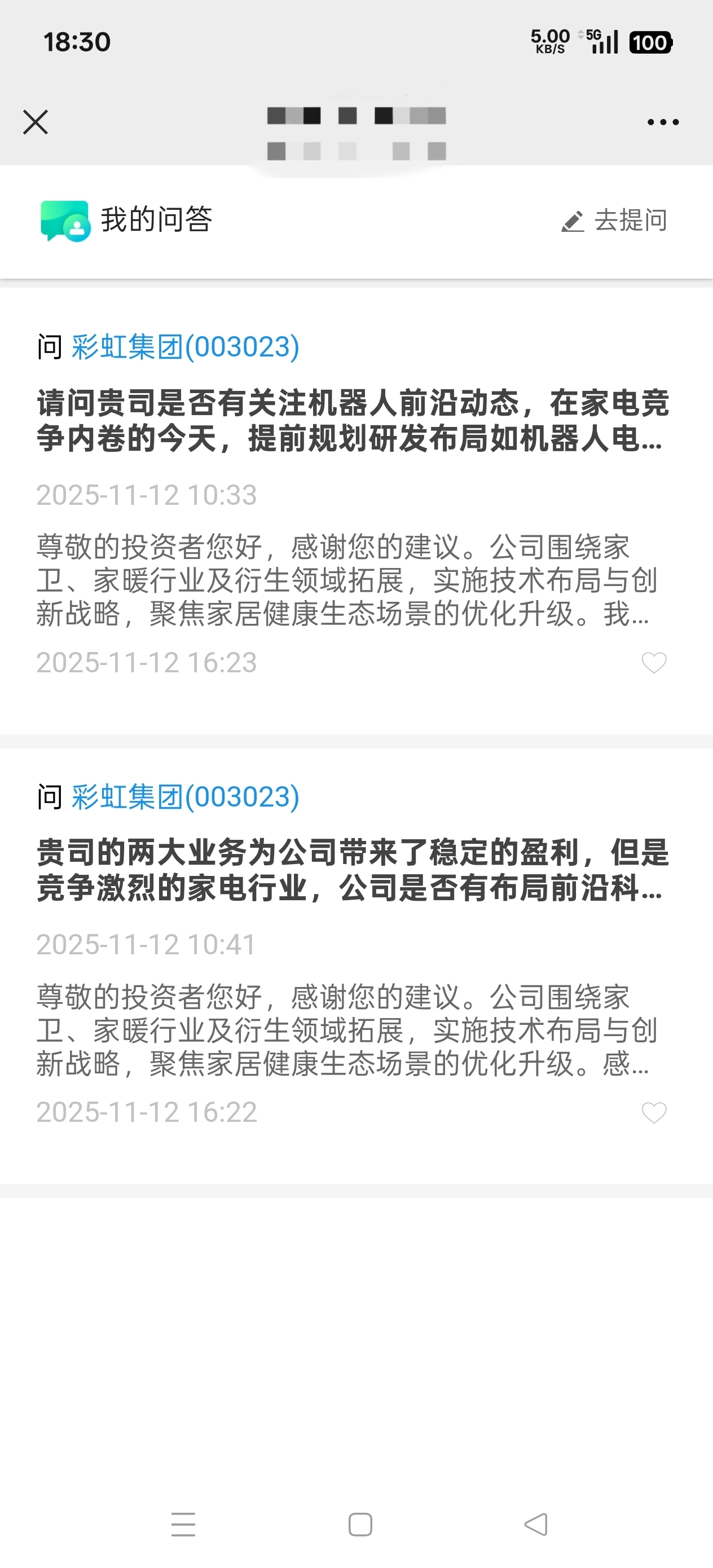 $彩虹集团(SZ003023)$ 如果明天大涨,各位得谢谢我,我也没想到董秘真回复了,嘿嘿
