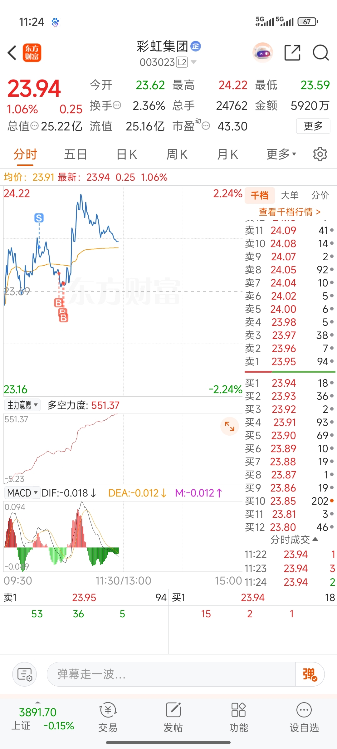 $彩虹集团(SZ003023)$ 重仓猛干 浮盈加仓