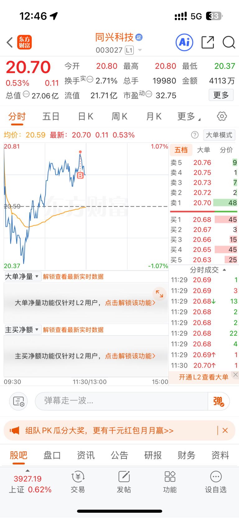 $同兴科技(SZ003027)$ 一出手就跌,主力你把我挂山顶了