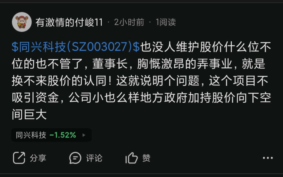 温馨提示: 1.根据《证券法》规定,禁止编造、传播虚假信息或者误导性信息,扰乱证券市场;2.用户在本社区发表的所有资料、言论等仅代表个人观点,与本网站立场无关,不对您构成任何投资建议。用户应基于自己的独立判断,自行决定证券投资并承担相应风险。《东方财富社区管理规定》