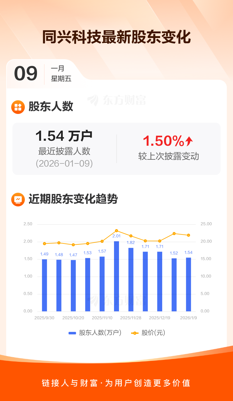 同兴科技:截至1月9日最新股东户数1.54万户,较上期增加1.50%