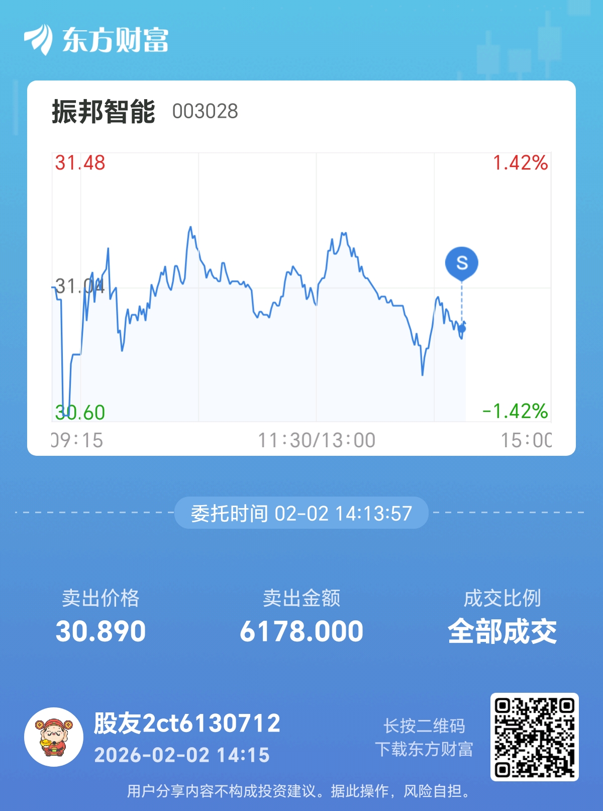 温馨提示: 1.根据《证券法》规定,禁止编造、传播虚假信息或者误导性信息,扰乱证券市场;2.用户在本社区发表的所有资料、言论等仅代表个人观点,与本网站立场无关,不对您构成任何投资建议。用户应基于自己的独立判断,自行决定证券投资并承担相应风险。《东方财富社区管理规定》