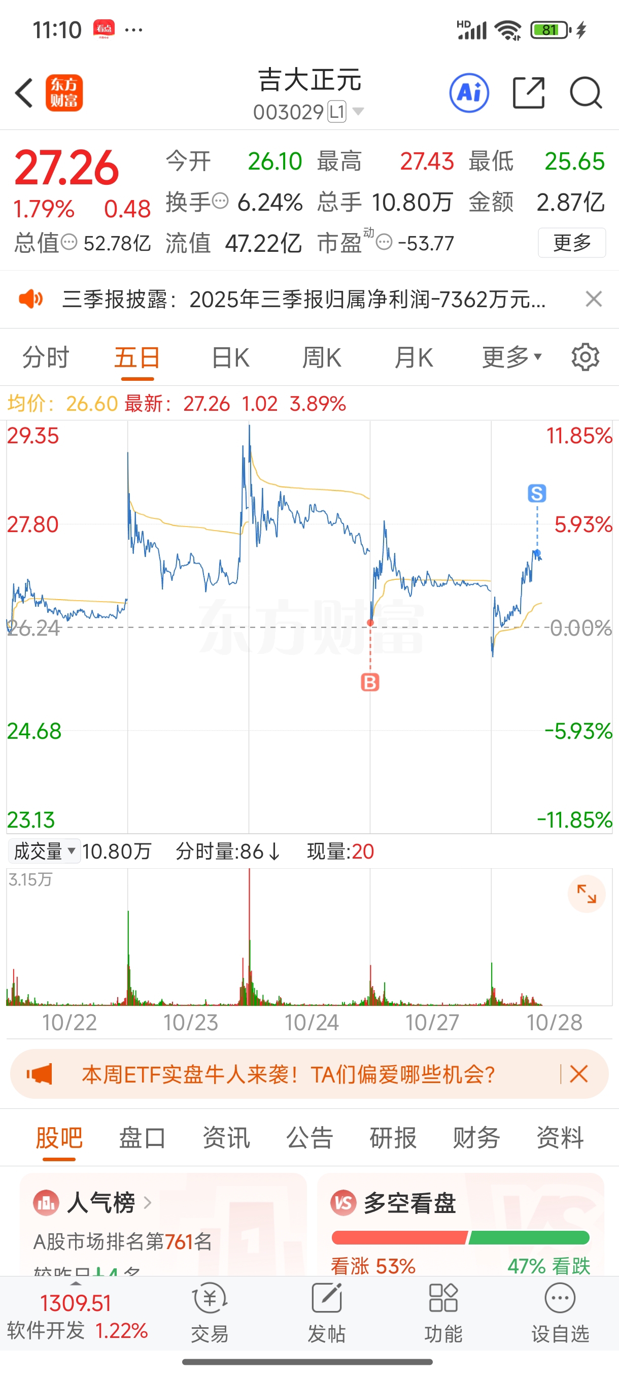 $吉大正元(SZ003029)$ 感谢主力不杀之恩!