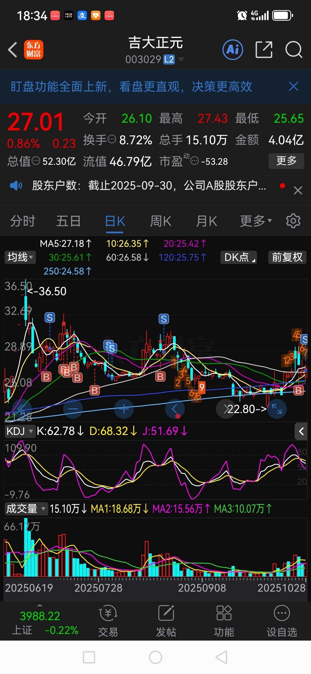 $吉大正元(SZ003029)$ 在这只股上亏了三十个点了,每次买在顶端就下杀,真不是东西